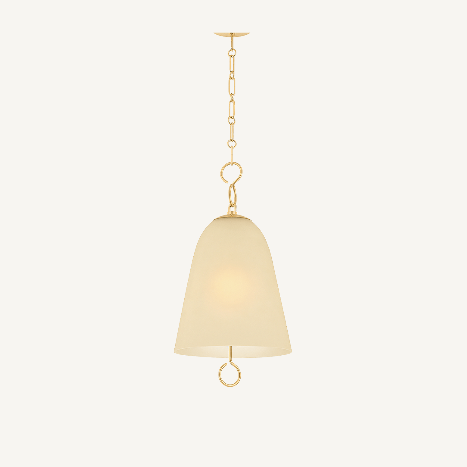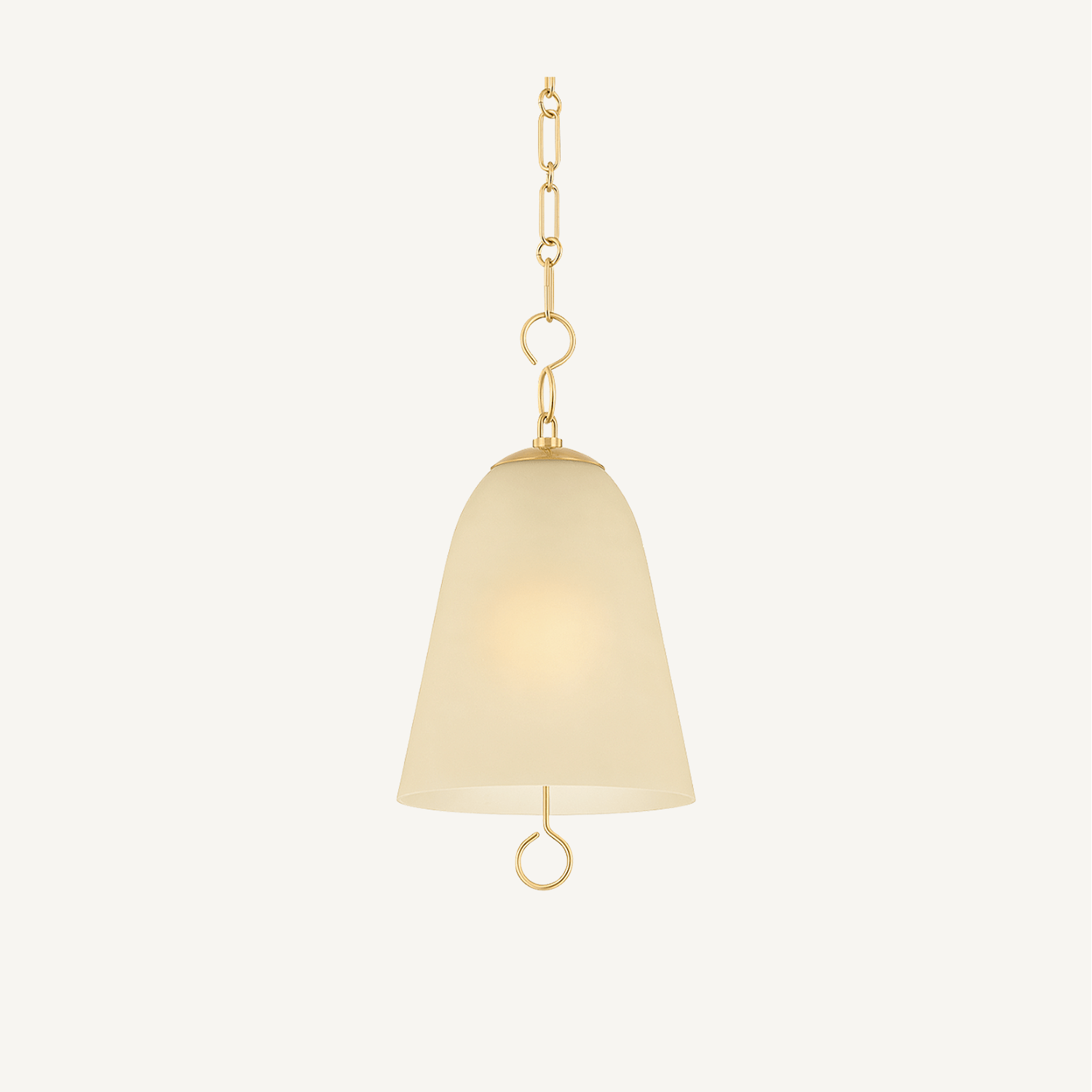 Like modern jewelry for a room, the Christine family pairs subtle, yet special glass treatments with unusual looped chain details. The warmth of the champagne glass works in tandem with the curved shaping of the shade to create a gentle diffusion of light. Welded ring details shine above and below the glass, adding a decorative detail to the earring-like silhouette. Available as a pendant in two sizes and a wall sconce, Christine can be used solo or in multiples to create a welcoming mood.