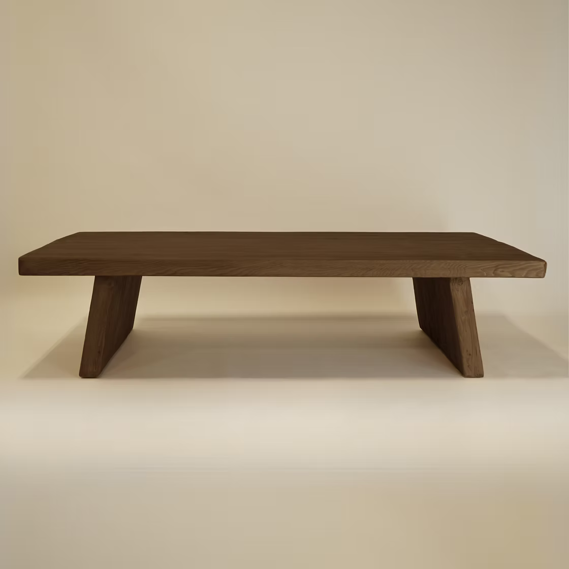 Made from solid reclaimed planks, each Moe coffee table is truly a one of a kind piece. The knots, nail holes, splits and cracks all speak to the age of the wood and give it a casual and primitive look. The slanted base makes it a beautiful focal piece that we love to style in a sitting room.